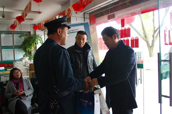 一年一度的新春佳节已经来临,在这举家团圆的日子里,公司领导心系节日期间依然坚守一线、默默奉献的员工,领导班子分赴各基层网点进行春节慰问。