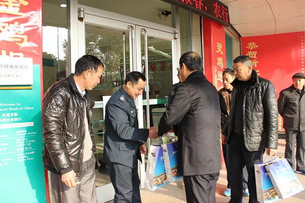 1月27日(年三十)晚上、1月28日(年初一)早上,公司董事长兼总经理仲明炎、总经理助理、驾校校长葛明亮、办公室主任兼工会主席杨珏等一行人,连续两天走访了县教育系统、金融系统、事业单位等20个派驻单位网点,代表公司向在春节期间依然坚守岗位,辛勤工作的员工致以新春的祝福,并送上了慰问品。