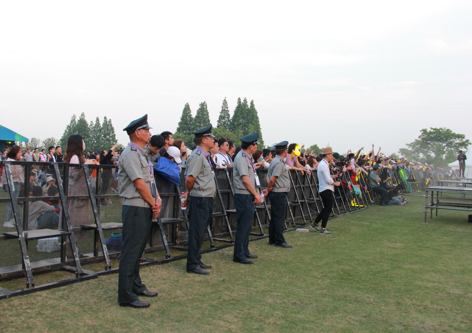 中午12点,200名保安员抵达现场,集结完毕。下午一点半,随着第一支乐队的登场,音乐节正式拉开序幕。在《生如夏花》、《平凡之路》、《那些花儿》等一首首耳熟能详的歌曲中,音乐节的气氛进入了高潮,观众区情绪高涨。公司总经理仲明炎带领督察组成员依次对各个执勤区域人员到位、执勤情况进行现场检查,加大内场秩序维护,避免发生意外。
