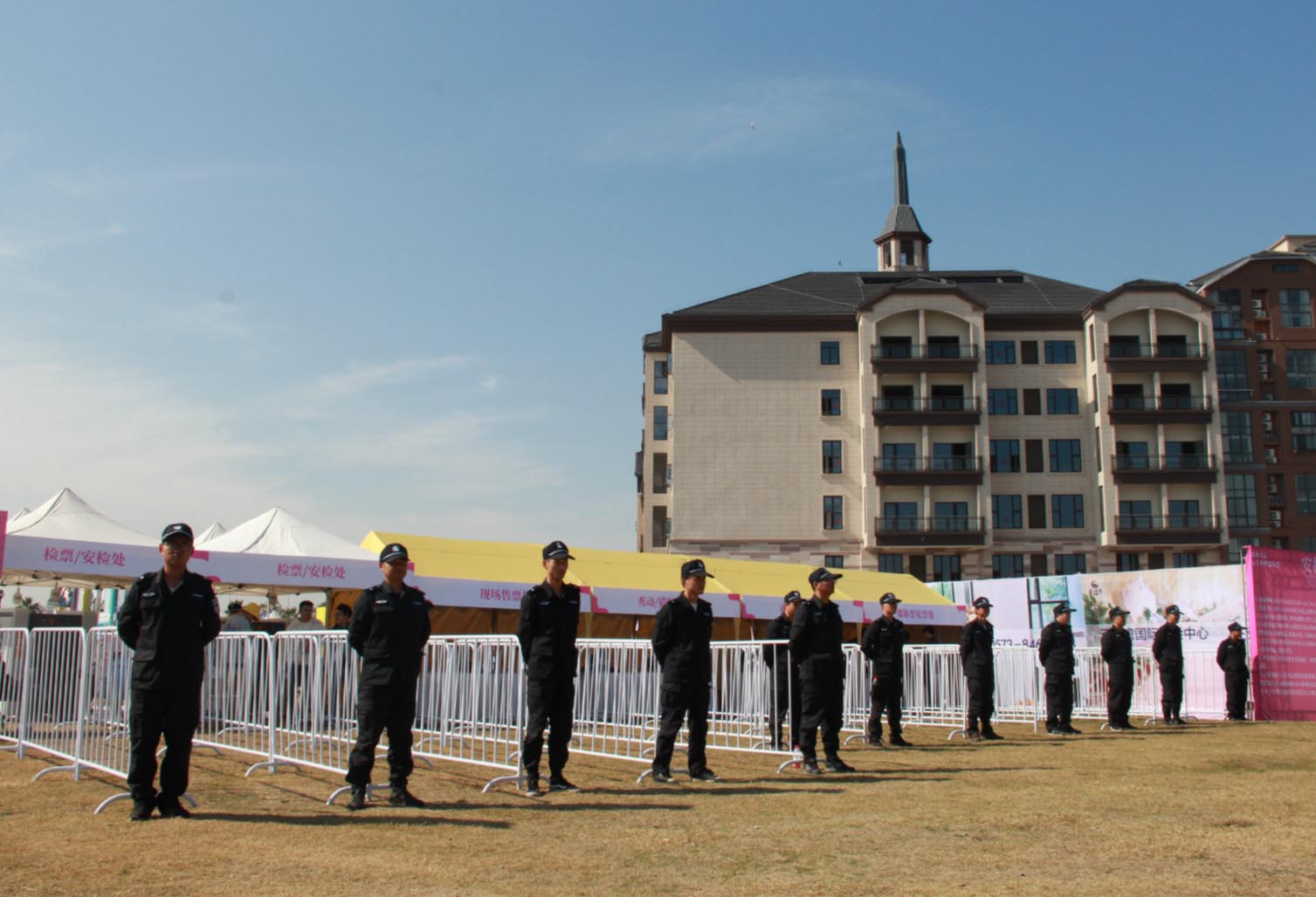 为确保本次安保工作的万无一失,公司领导层高度重视,成立安保工作领导小组,并结合实际情况制定了安保工作方案和应急预案。公司保安部主动提前与公安机关对接、提前勘查现场、提前安装调试安检设备,排查各类不安全隐患。同时按照现场保卫工作的总体部署,落实职责分工,加强岗中巡查、岗位监督,及时了解人流情况,不断细化和完善工作流程。