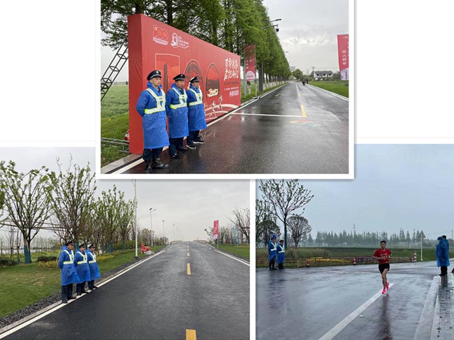 嘉善君泰保安有限公司抽调了600余名保安队员参与复兴之路·薪火驿传百公里接力赛嘉善辖区内的安保工作。
