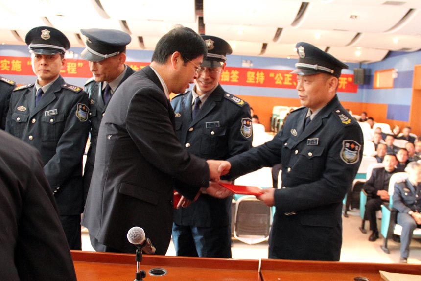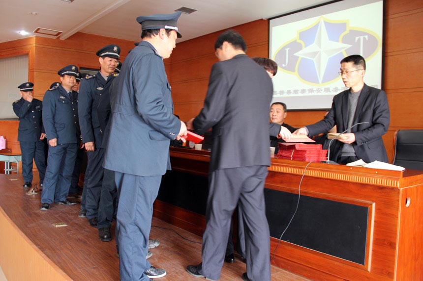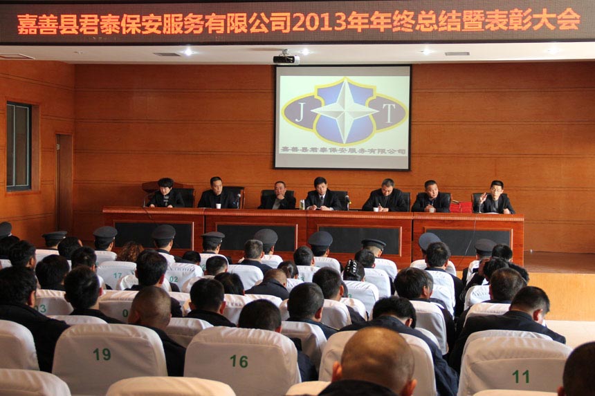 下午2点整,公司总经理宣布2013年度嘉善县君泰保安服务有限公司总结表彰大会开始。会议首先对获得2013年度“十佳优秀员工”、“十佳岗位能手”、“十佳保安”、“先进集体”等人员进行了表彰并颁发了证书。